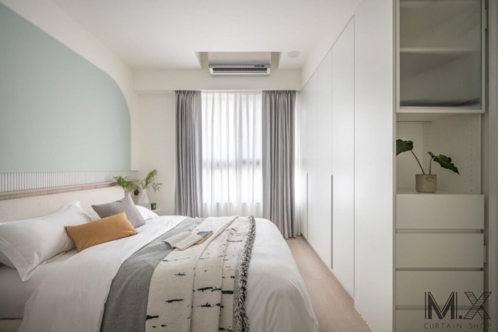 ▍臥室:雙層窗簾(白紗 + 遮光布簾)