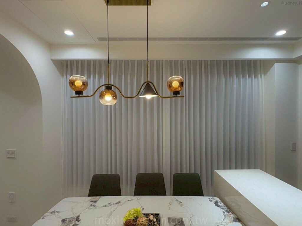 屋主為重視生活質感的家庭,平日白天希望保有自然採光,晚上則需完整隱私;同時因空間多元(客餐廳、書桌、臥榻、更衣間),窗簾需兼顧機能與動線流暢。