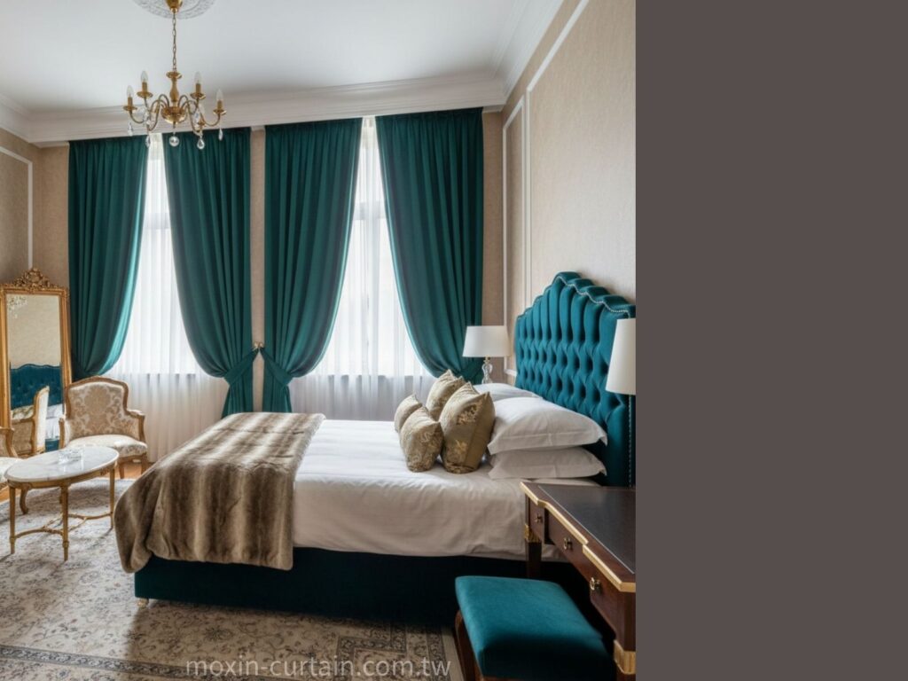 絲絨材質窗簾擁有豪華感與極佳的遮光效果,非常適合高端與典雅風格。