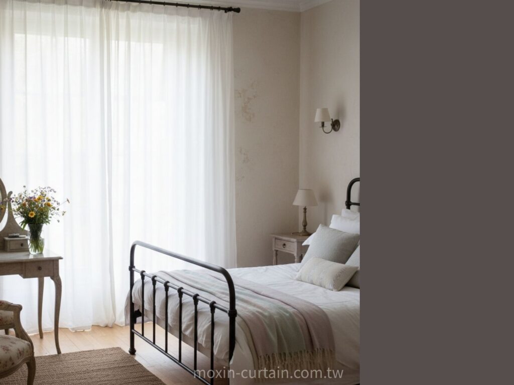紗簾輕盈透光,能柔和光線,創造浪漫的視覺效果。