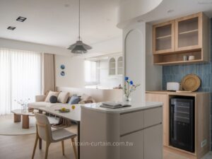 柔紗簾的柔和光影營造溫馨氛圍,可調整布簾角度靈活控制隱私;垂直柔紗簾適合大面落地窗,氣派優雅,讓客廳成為居家視覺焦點。
